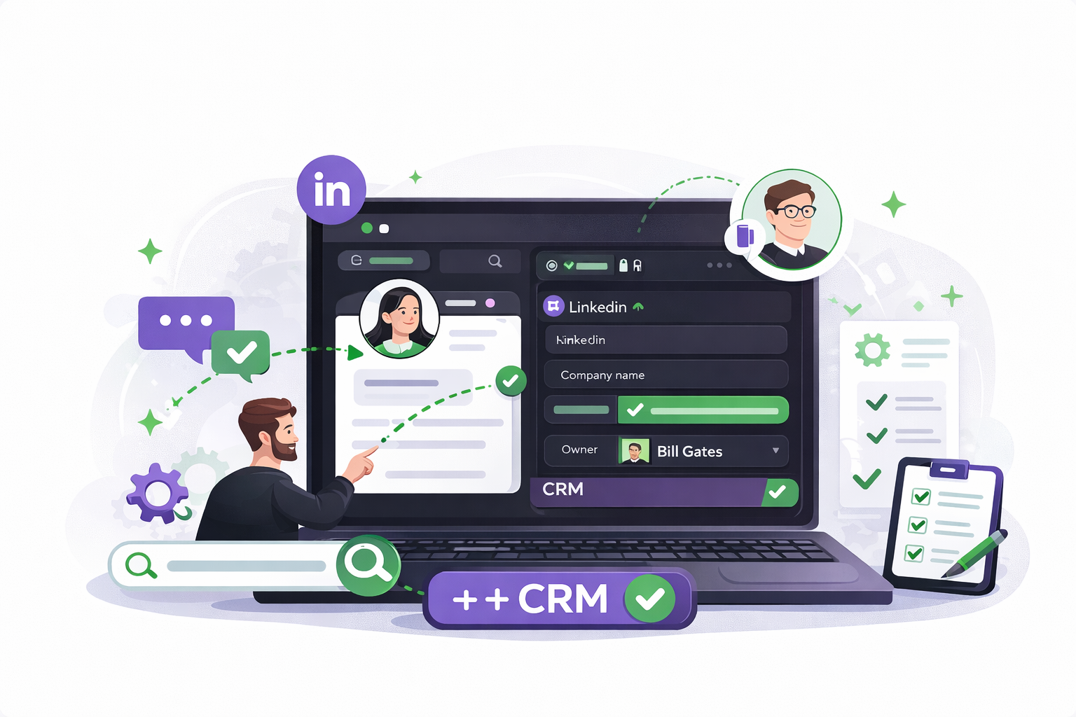Search CRM records, view activity history, and create & update contacts, companies, and deals — all from a sidebar on LinkedIn. No tab switching. No copy-paste chaos.