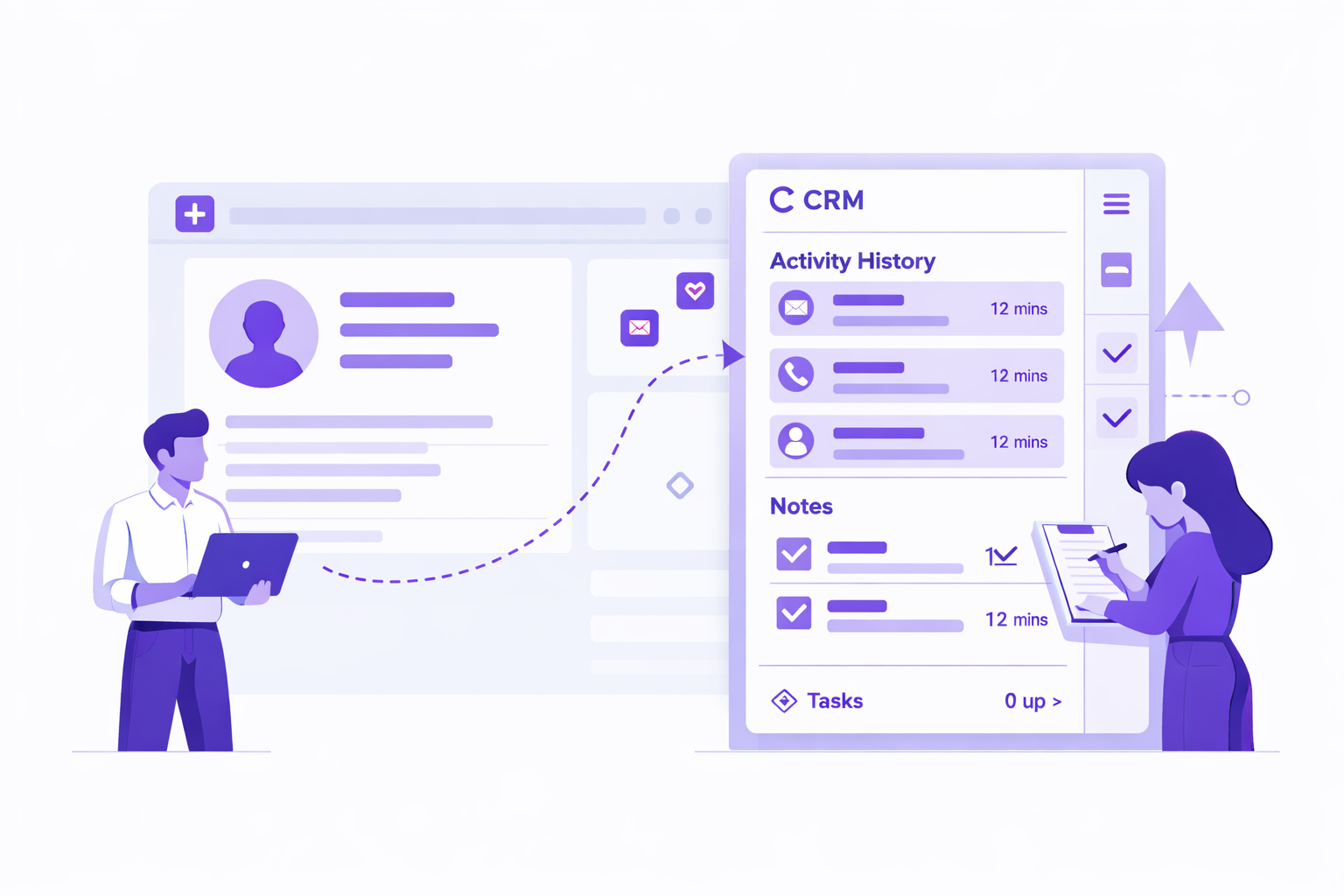 • Check activity history instantly: emails, notes, tasks — right from your CRM
